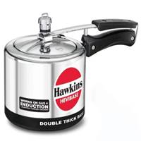 INDUCTION COMPATIBLE HAWKINS HEVIBASE PRESSURE COOKER A double-thick 6.35 mm base, which is hard anodised and an Induction Compatible disc attached under high pressure to ensure a base that is permanent and heats quickly and evenly. The double-thick, heavy gauge base is ideal for light frying before pressure cooking. The base stays flat, never bulges. Plus, all the features of the Hawkins Classic Pressure Cooker. Suitable for gas, induction, electric, ceramic and halogen cooktops.